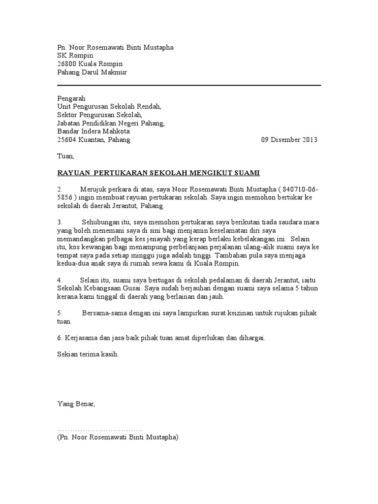 Surat Rayuan An Pertukaran Mengikut Suami Pdf