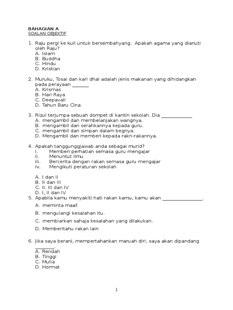 Soalan Ujian Bulanan 1 Pendidikan Moral Tahun 6 Pdf